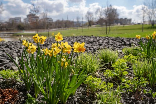 Frühlingsblüher auf dem Bundesgartenschaugelände in Heilbronn.