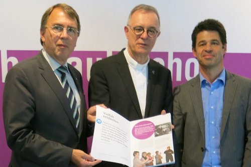 Netzwerk Inklusion in der Landeskirche (NIL) erarbeitet Aktionsplan.<br> Oberkirchenrat Dieter Kaufmann, Vorstandsvorsitzender des Diakonischen Werks Württemberg, Landesbischof July als Vorsitzender des Netzwerkes und Wolfram Keppler, Geschäftsführer Aktionsplan Inklusion Leben (v. l. n. r.)