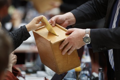 Die Landessynodalen stimmen ab.