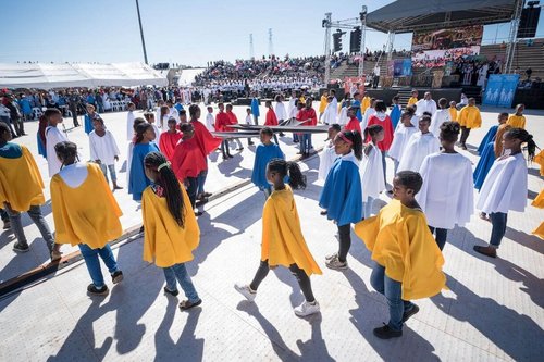Lutheraner und Lutheranerinnen aus der ganzen Welt sowie ökumenische Gäste versammelten sich am Sonntag, 14. Mai, im Sam-Nujoma-Stadion in Windhuk, Namibia, zum globalen Gedenken des 500-jährigen Reformationsjubiläums.