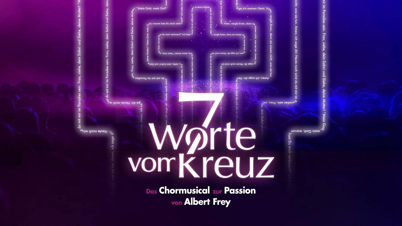 Im Chormusical „7 Worte vom Kreuz“ schaffen neue und bekannte Lieder mit ergreifenden und neuinterpretierten Melodien, in orchestralen Arrangements und tiefgründigen Texten eine Verbindung zu aktuellen Fragen unseres Lebens. Das Werk wird von knapp 1.000 Stimmen im Chor, Band und Orchester aufgeführt – eine dialogische, moderne Geschichte, die nicht am Kreuz endet, sondern mit einer echten Perspektive und Hoffnung.