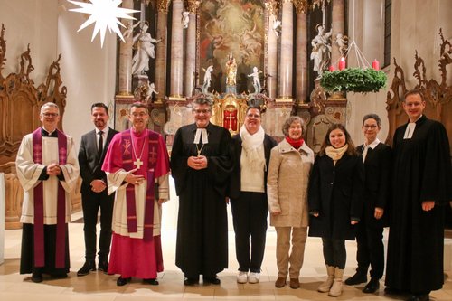 Bischof Dr. Klaus Krämer und Landesbischof Ernst-Wilhelm Gohl eröffneten am 29. November 2025 bei einem ökumenischen Gottesdienst in der Predigerkirche Rottweil gemeinsam die Adventszeit 2025. Im Bild vl.n.r.: Münsterpfarrer Timo Weber, Steffen Schanz von der Neuapostolischen Kirche, Bischof Dr. Klaus Krämer, Landesbischof Ernst-Wilhelm Gohl, Petra Müller, Dorothee Kadelbach, Nina-Marie Strasser, Sabine Winzenried von der Neuapostolischen Kirche und Dekan Ulrich Dewitz.