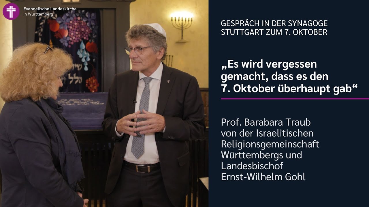 Seit dem Massaker durch die Hamas hat sich auch für die jüdischen Gemeinden in Württemberg viel verändert: ein Besuch von Landesbischof Ernst-Wilhelm Gohl bei Prof. Barbara Traub in der Stuttgarter Synagoge. Hier finden Sie einen ausführlichen Bericht sowie ein Video über das Gespräch.