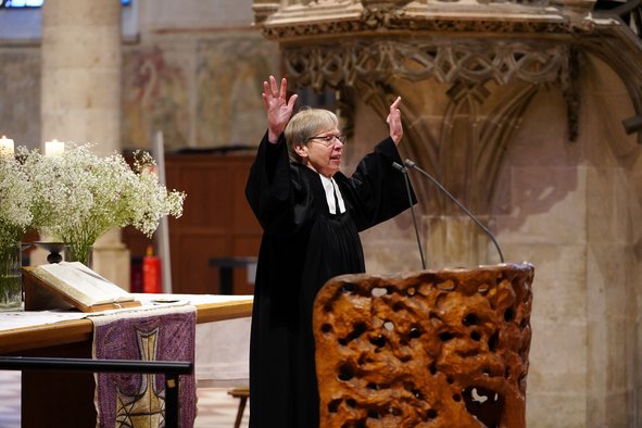 Prälatin Gabriele Wulz: Es ist immer die Frage: Wer spricht und wer ist Kirche? Diese Unterscheidung ist immer wichtig. Es gibt ein Amt der Verkündigung. Und das ist nicht in dem Sinne politisch, dass da tagesaktuelle Ereignisse thematisiert werden. Aber wenn ich gefragt werde, wo ich stehe, dann bin ich als Christenmensch verpflichtet, Auskunft darüber zu geben, wo ich stehe und welche Hoffnung mich leitet, und davon Rechenschaft abzulegen. Und wenn man Rechenschaft ablegt, wird man deshalb eben auch angegriffen. Das muss man dann aushalten.