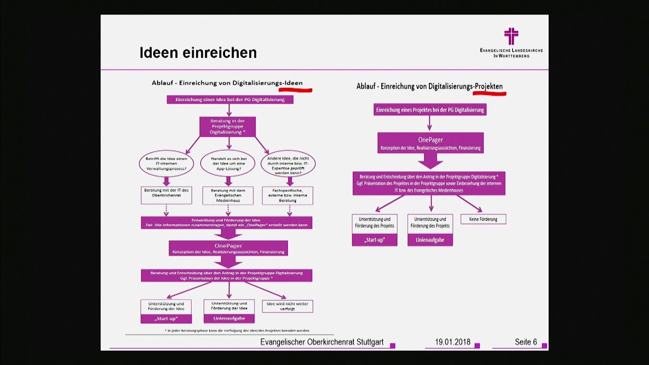 Digitalisierung bedeute zwar, dass jeder einzelne die Macht habe Inhalte an die Öffentlichkeit zu bringen. Es darf aber nicht ins Blaue kommuniziert werden, sondern Kommunikation sollte organisiert und mit einem klaren Konzept stattfinden. Vor allem wenn es sich bei den Kommunizierenden um eine Institution von der Größe und gesellschaftlichen Bedeutung der Württembergischen Landeskirche handele.